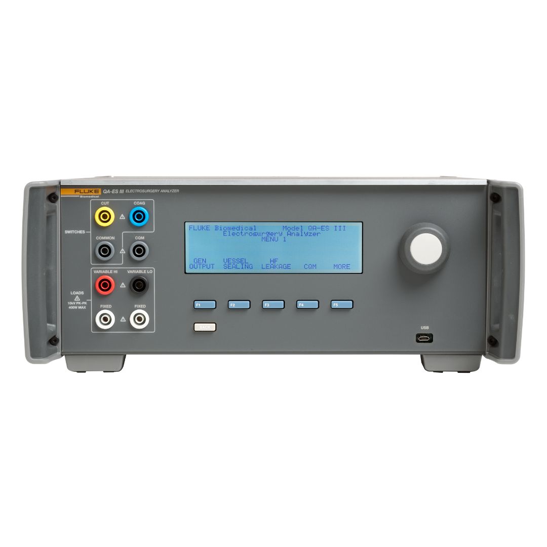 Hét toestel voor het testen van elektrochirurgie-apparatuur is de QA-ES III van Fluke Biomedical. De QA-ES III test alle belangrijke eigenschappen van het elektrochirurgietoestel, zoals: vermogensmeting, vermogens-distributietest en HF-lekstroom. De QA-ES III biedt veiligheid en zekerheid rondom uw elektrochirurgie-apparatuur en voldoet aan alle relevante IEC-normen op dit gebied.