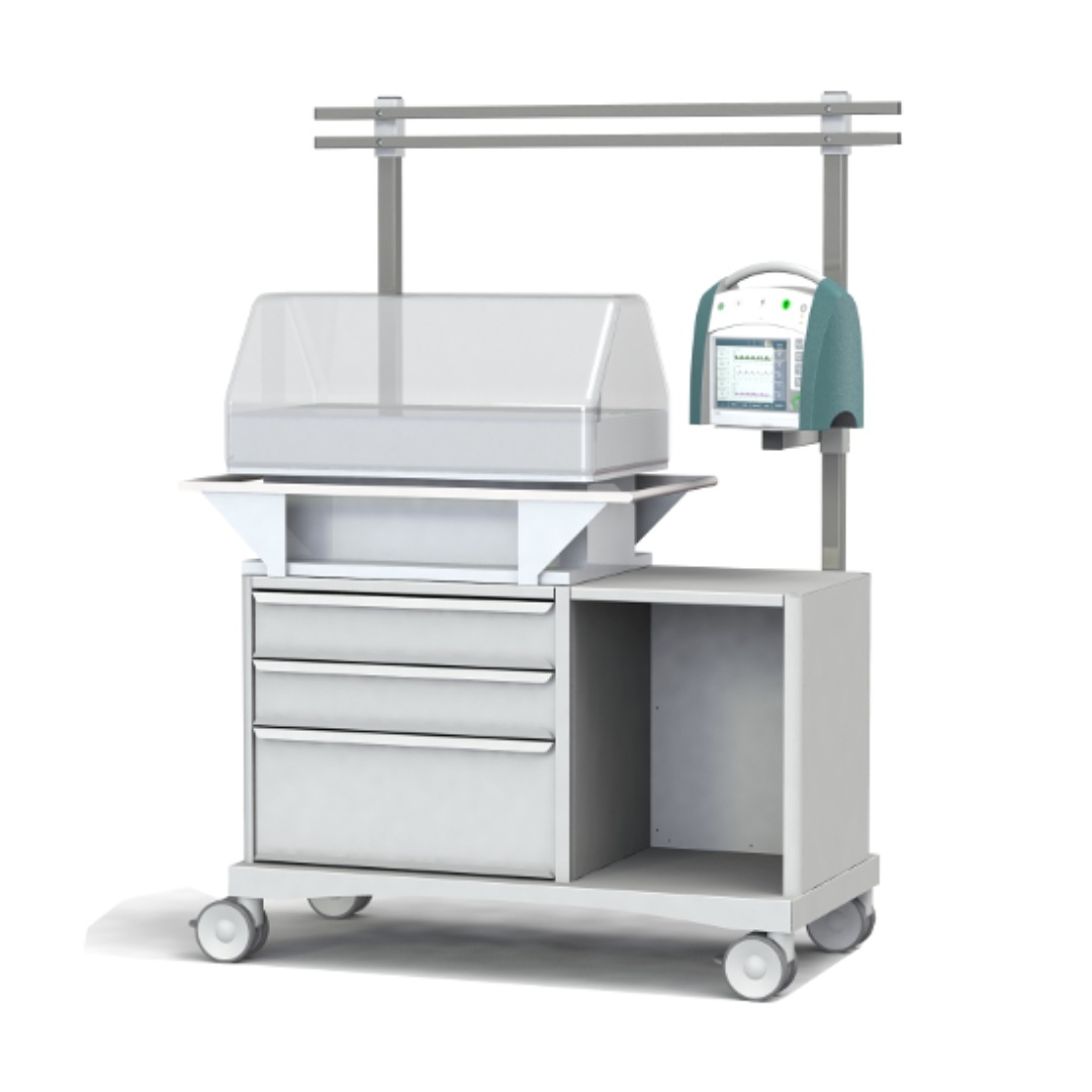 De couveusetrolley is er in een standaard en een brede uitvoering. Bij de standaard uitvoering is de breedte vergelijkbaar met de couveuse. De brede uitvoering heeft nog meer ruimte voor apparatuur en opslag.