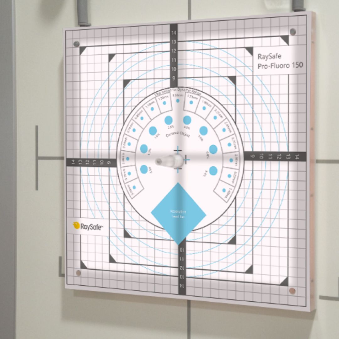 Het Raysafe P Fluoro fantoom is ontwikkeld voor acceptatie- en constantheidstesten van digitale en analoge radiografie- en fluoroscopiesystemen. Dit fantoom is geschikt voor routinematige controles bij āover couchā tubes, āunder couchā tubes en C-bogen. Een houder voor het positioneren op een tafel of wand bij fluoroscopie is inbegrepen.